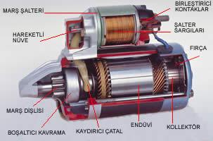 Marş Dinamosu, araçta çalışması için en yüksek voltaja ihtiyaç duyulan parçalardan birisidir. Marş motoru, marş dişlisi, bobin, konvektör ve marş motoru kömürü bulunmaktadır. Genellikle bu parçaların zamanla ya da dış etmenlere bağlı olarak arızalanması, marş moturunun tamamen devre dışı kalmasına neden olabilir.