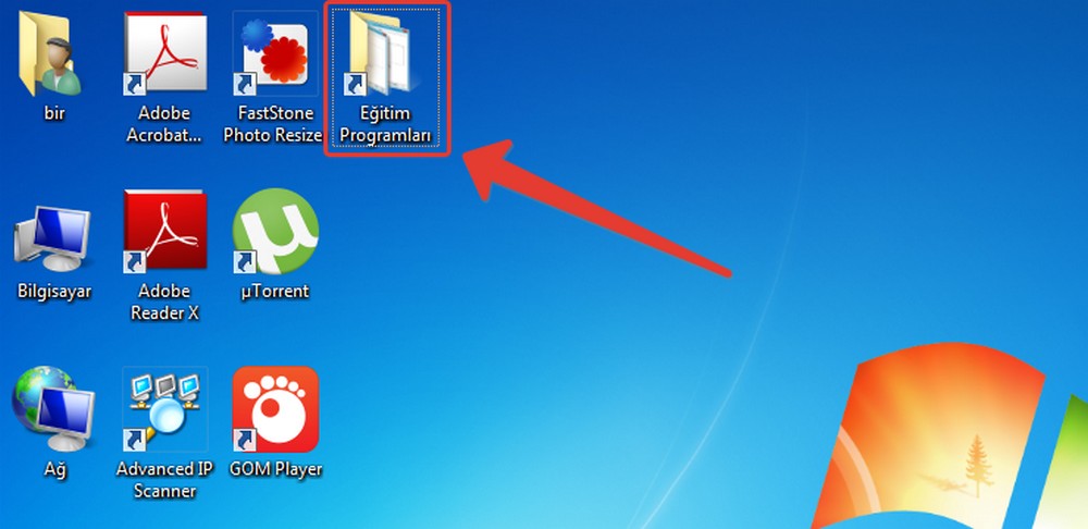 Bilgisayarınızın herhangi bir alanında bulunan bir klasörü masaüstünde kısayol olarak gösterebilirsiniz. Bu işlemleri yapmak için aşağıda gösterdiğim adımları takip etmeniz yeterli. Ayrıca bir bilgi vereyim. Bu masaüstündeki kısayolu silerseniz klasörün ana kaynağı silinmez ve aynen kalır. Örneğin; aşağıda gösterdiğim D: Sürücüsünde bulunan “Eğitim Programları” isimli klasörü masaüstünde kısayol olarak göstereceğim. Masaüstündeki Eğitim Programları kısayolunu sildiğimde D: Sürücüsündeki Eğitim Programları klasörü silinmeyecektir.
