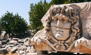 Ancak Athena’nın bilmediği bir şey varmış. Güzel Medusa, Poseidon’un kendisine zorla sahip olduğu gece denizlerin kudretli Tanrısından hamile kalmış. Perseus’un gözleri kamaştıran kılıcı Medusa’nın kafasını bedeninden ayırdığı anda Poseidon’un Medusa’nın rahmine bıraktığı çocukları Pegasus ve Chrsyar, Medusa’nın cansız bedeninden dışarı çıkıvermişler.Athena, denizler tanrısı Poseidon’dan olma bu iki kardeşi kendisine köle yapmaya karar vermiş. Kardeşlerden Chrsyar’ın iyi bir savaşçı olacağını düşünen Athena onu kendisine, kanatlı beyaz bir at olarak doğan Pegasus’u da Korinthos şehrinin kralı Glaukos’un oğlu Bellerophone’e vermiş. Pegasus’u ona vermesinin nedeni de Bellerophone’nin ağzından ateşler saçan, aslan başlı, keçi gövdeli ve yılan kuyruklu Khmimaira adında bir canavarla savaşmaya gidecek olmasıymış. Athena, uzun zamandır bu canavarla savaşmak için yardım isteyen Bellerophone’a Pegasus’u vererek yardım çağrılarına da kayıtsız kalmadığını göstermiş böylece. Athena “Pegasus, Bellerophone için bu savaşta oldukça işi yarar, ne de olsa denizler Tanrısı güçlü Poseidon’un oğlu” diye düşünmüş. Bellerophone, Pegasus’u iyi bir savaşçı olarak eğitmiş ve çok güzel bir dostluk kurulmuş aralarında. Zamanı gelince de Bellerophone kanatlı atı Pegasus’a binerek Khimaira ile savaşmaya gitmiş. Pegasus canavarın ağzından fışkırttığı alevlerin kendilerine ulaşamayacağı bir yüksekliğe çıkmış. Bellerophone da canavara havadan oklarıyla saldırmış. Kurşun ve demir karışımı oklarının birbiri ardına fırlatmış korkunç canavara. Canavar yaralanıyormuş ama bu yaraları hiç de ölümcül değilmiş. En sonunda elinde tuttuğu, Tanrıların onu kutsadığı mızrağını kaldırmış ve canavar Khimaira’nın en zayıf yerine, yani tam çenesine saplamış. Canavar Khimaira’nın ağzından fışkırttığı alevler mızrağın kurşun ucunu hemen eritmiş. Eritince de kurşun canavarın boğazından içine doğru akmış ve canavar oracıkta ölüvermiş. Bellerophone canavarın cansız bedenine gururla bakmış. Yakın dostu büyük ve güçlü Tanrı Poseidon’un oğlu Pegasus’la birlikteyken yenemeyeceği hiçbir düşman olamayacağını düşünmüş. Bellerophone bu büyük zaferinin sarhoşluğu içinde kendinden geçmiş ve artık kendisini de bir Tanrı olarak görmeye başlamış. Yerinin de Tanrıların yaşadığı Olympos Dağı’nın zirvesi olduğunu düşünerek oraya doğru yola çıkmış. O sırada Olympos’taki tahtında olup biteni izleyen Tanrıların Tanrısı Zeus, Olympos’a doğru kanatlı atıyla gelen Bellerophone’u görünce çok sinirlenmiş. Hemen bir atsineğini göndererek Pegasus’u ısırmasını emretmiş. At sineği Baştanrıdan aldığı emirle birlikte hızla Bellerophone ve Pegasus’un yanına gitmiş ve Pegasus’u ısırmış. At sineğinin ısırmasıyla canı çok yanan Pegasus gökyüzünün engin mavilerinin ortasında çırpınınca sırtındaki Bellerophone’u da atıvermiş. Böylece Bellerophone tanrılara karşı işlediği bu büyük günahının cezasını ölene kadar insanların ondan iğreneceği bir şekilde çirkin, kör, sakat olarak geçirmeye mahkûm olmuş. Pegasus ise yükselmeye devam etmiş. Sonunda Olympos’un tepesine varmış. Zeus buraya kadar gelebilen bu kanatlı beyaz atı çok sevmiş ve kendisinin silahlarını taşıyan bir hizmetkâr olarak yanında görevlenmiş…