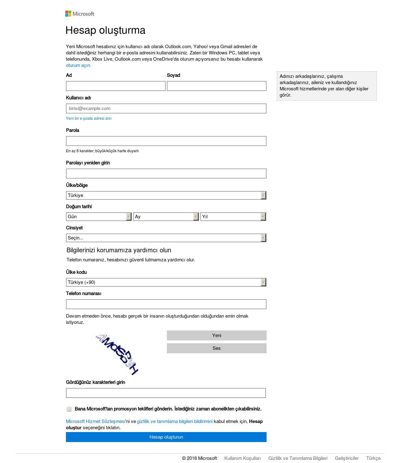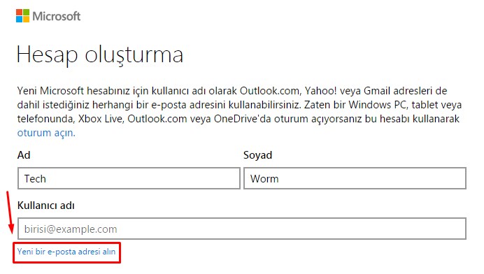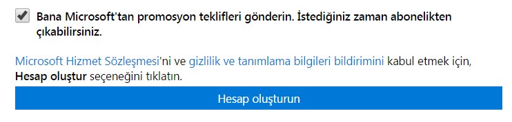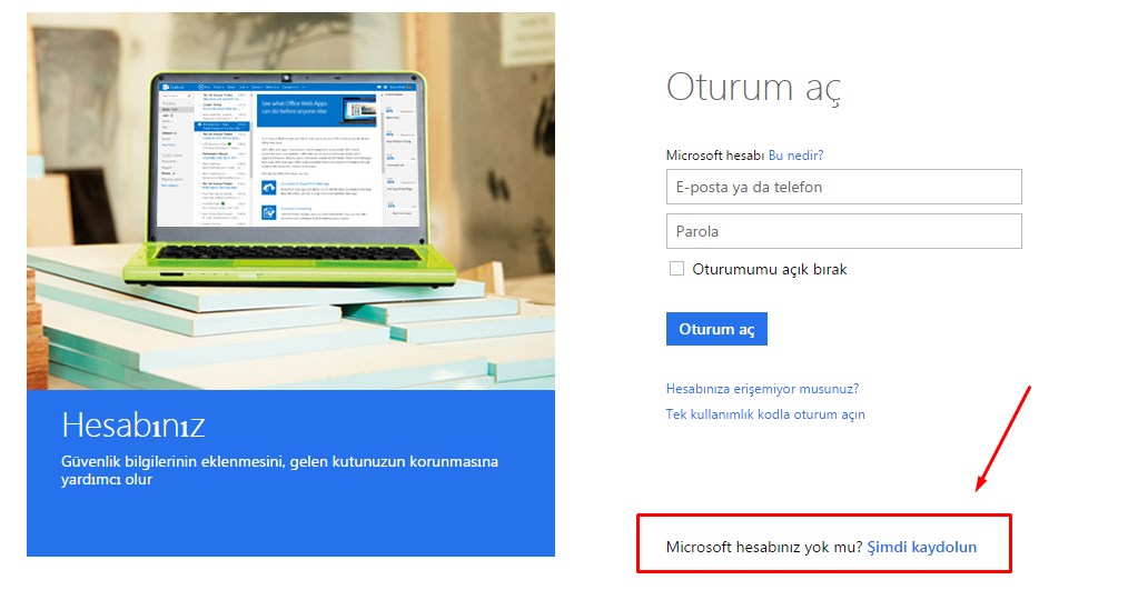 1- https://login.live.com/tr bu adrese gidin ve Microsoft hesabınız yok mu? Şimdi kaydolun seçeneğini seçin.