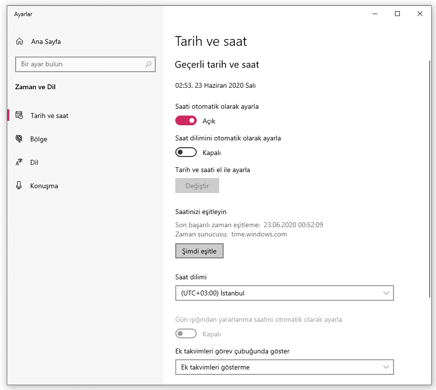 1- İlk yöntemimizde tarih ve saati kontrol doğru olup olmadığını kontrol ediyoruz. Bunun için tarih ve saatin üzerini sağ klikliyoruz ve gelen panelden “Tarih/Saat Ayarla” seçeneğini seçiyoruz. Gelen pencereden “Şimdi Eşitle” diyoruz ve böylece saatimiz Windows sunucu saati ile eşitlenerek doğru zamana ayarlanmış olacaktır. Ardından mağazaya giriş yapalım ve mağazanın çalışıp çalışmadığını kontrol edelim.