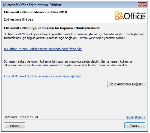 Microsoft Office Word, Excel, Power Point gibi uygulamaları açtığınızda karşınızda aşağıdaki gibi “Microsoft Office Professional Plus 2010 | Etkinleştirme Sihirbazı | Microsoft Office uygulamasının bu kopyası etkinleştirilmedi” hatası çıkıyorsa bunun anlamı kullandığınız ofis programı orjinal değildir. Bu şekilde kullanmaya devam edebilirsiniz. Ancak ben orjinal hale getirmek istiyorum diyorsanız yapacağınız işlem oldukça basit.