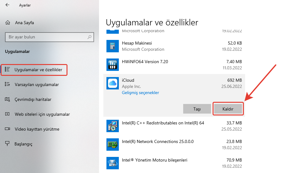 Burada bilgisayarınıza yüklemiş olduğunu tüm uygulama ve programlar yer alacaktır. Silmek istediğiniz uygulamayı veya programı tıklayın ve ardından “Kaldır” seçeneğini seçin.
