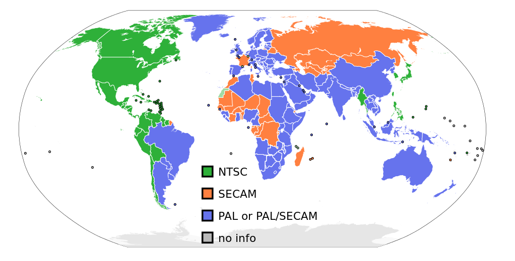 Bunlardan ilki, 1954’te ABD’de geliştirilen ve bugün ABD’nin yanı sıra Kanada, Meksika ve Japonya’da hâlâ kullanılmakta olan NTSC‘dir. (National Television Systems Committee: Ulusal Televizyon Sistemleri Komitesi).