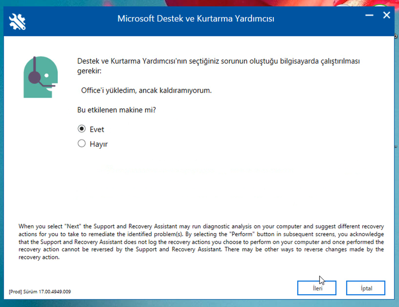 1- İlk olarak hemen altta verdiğim linkten Microsoft Office kaldırma aracını bilgisayarınıza indirin.