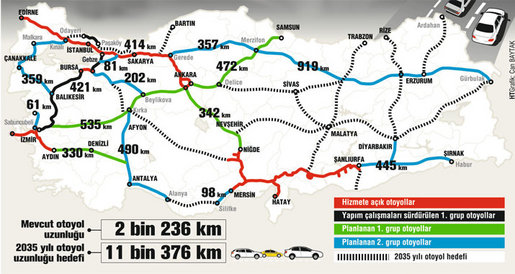 Hız limitleri şu anda İstanbul-Ankara, Mersin-Adana, Adana- Şanlıurfa, Niğde-Şanlıurfa, Edirne-İstanbul, Aydın-İzmir otoyollarında uygulanacak. Uygulamanın sonraki günlerde başarı oranına göre diğer yollarda uygulanması bekleniyor.
