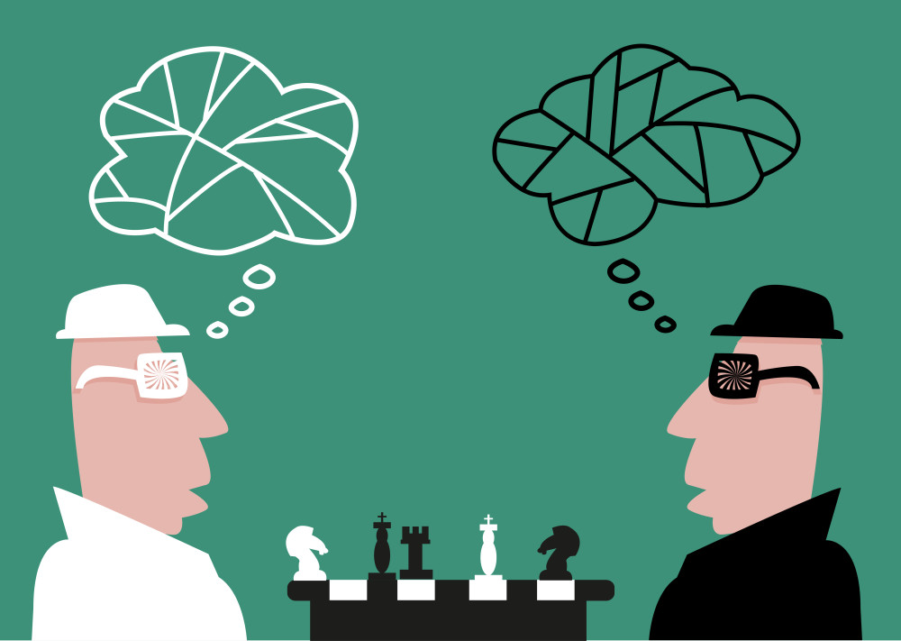 Bir başka oyun da şöyle olabilir: Ben birden fazla sığınağın bulunduğu bir savaş alanındayım, siz de küçük bir uçakla tam üstümde daireler çiziyor ve tepeme bir bomba bırakmak için fırsat kolluyorsunuz. Normalde benim çevredeki en sağlam görünüşlü sığınağı seçmem ve orada saklanmam gerekir ama sizin de normalde yapabileceğiniz en doğru iş benim en iyi sığınağı seçmiş olabileceğimi düşünerek orayı bombalamaktır. Bunu bildiğim için benim o denli sağlam görünmeyen ikinci sığınağı seçmem gerekmez mi? Eğer ikimiz de çok akıllıysak olasılıklara dayanan stratejiler izleriz. Örneğin ben çevredeki çeşitli sığınaklar arasında bana en fazla kurtulma şansı verecek özelliklere sahip olanları arar, bundan sonra nereye saklanacağımı belirlemek için yazı-tura atar ya da gelişigüzel sayılardan oluşan bir liste kullanırım. Siz de beni vurma şansınızın en yüksek düzeyde olduğu sığınağı belirlemek için benzer biçimde olasılıklardan yararlanırsınız. Bu size saçma gelebilir ama ikimiz de akılcı davranabiliyorsak yapacağımız budur. Doğal olarak ben hareketlerimi gizlemezsem sizin işiniz kolaylaşır, buna karşılık siz de nereyi bombalamayı tasarladığınızı bana sezdirmemeye çalışmalısınız. Günlük hayatta patronunuz, sevgiliniz ya da ülkenizi yönetenlerin sizi yönlendirmeye çalıştığını sık sık görürsünüz. Size önerdikleri oyun, seçeneklerden birinin kesinlikle daha parlak göründüğü bir seçimdir. Bu seçenekte karar kıldığınız zaman karşınıza yeni bir oyun çıkar ve böylelikle kısa bir süre sonra akılcı seçimlerinizin sizi aslında hiçbir zaman istememiş olduğunuz bir yere getirdiğini görür ve tuzağa düştüğünüzü anlarsınız. Bu noktaya gelmemek için yapacağınız şey arada bir beklenmedik biçimde davranmaktır. En çekici görünen seçeneklerden uzak durduğunuz zaman kaybettiğiniz şeylerin karşılığında daha özgür olabilirsiniz. Doğal olarak hedefiniz sadece beklenmedik biçimde davranmak değil, bunu belli bir olasılık stratejisine uygun olarak yapmaktır.
