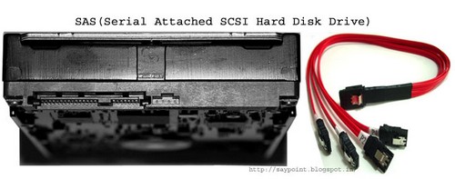 Paralel SCSI yapısının seri versiyonudur. Dört ve daha fazla kanalı birlikte kontrol edebilen noktadan noktaya iletişim mimarisine sahiptir. Çift yönlü iletişim kanallarına sahiptir. SAS yapısı SATA diskleri desteklemektedir fakat tersi yani SATA kanallar SAS disklerini desteklememektedir. Kablo iletken sayısı ve konektör yapıları paralel SCSI ya göre oldukça düşüktür.