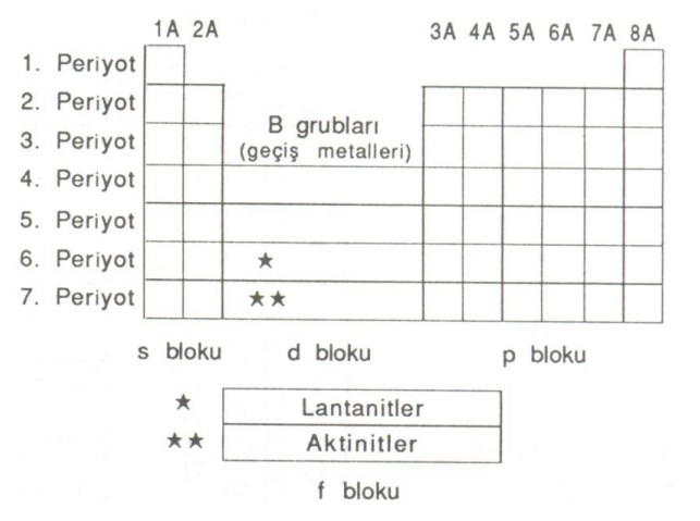 s ve p blok elementleri A gruplarını, d blok elementleri B gruplarını oluşturur. d blok elementlerine geçiş elementleri, f blok elementlerine iç geçiş elementleri denir.