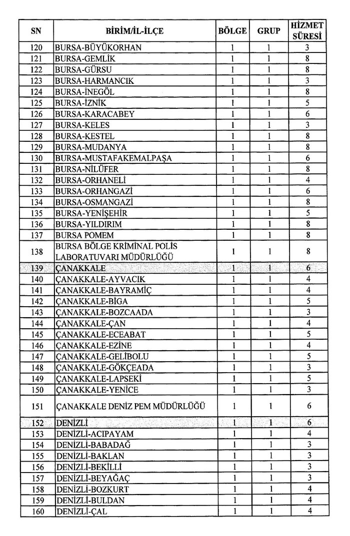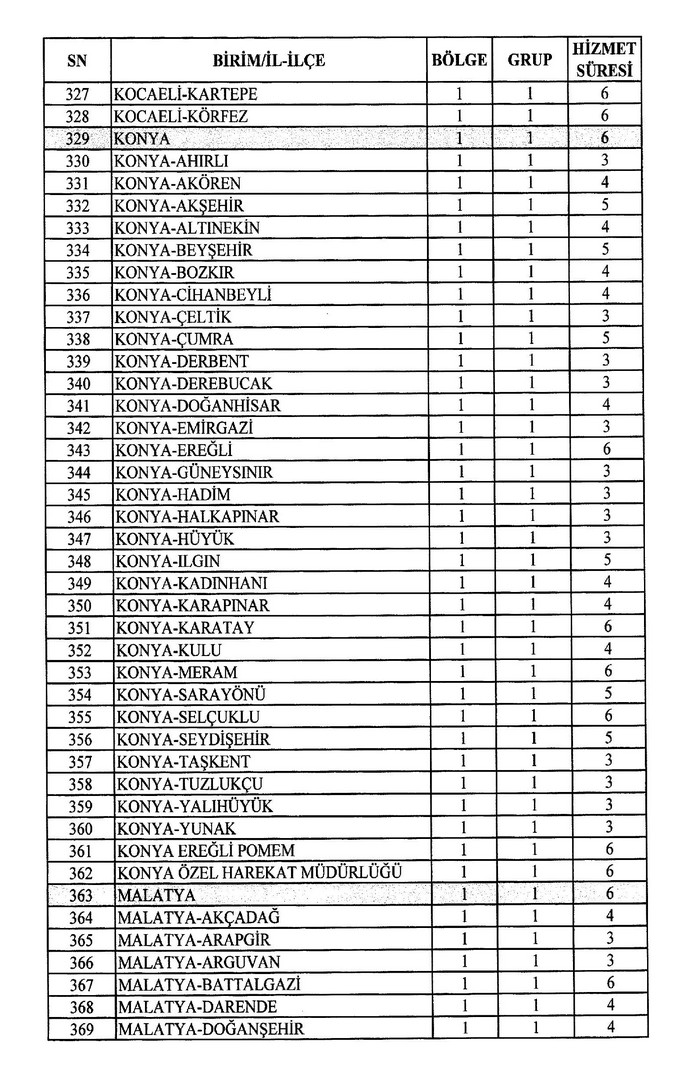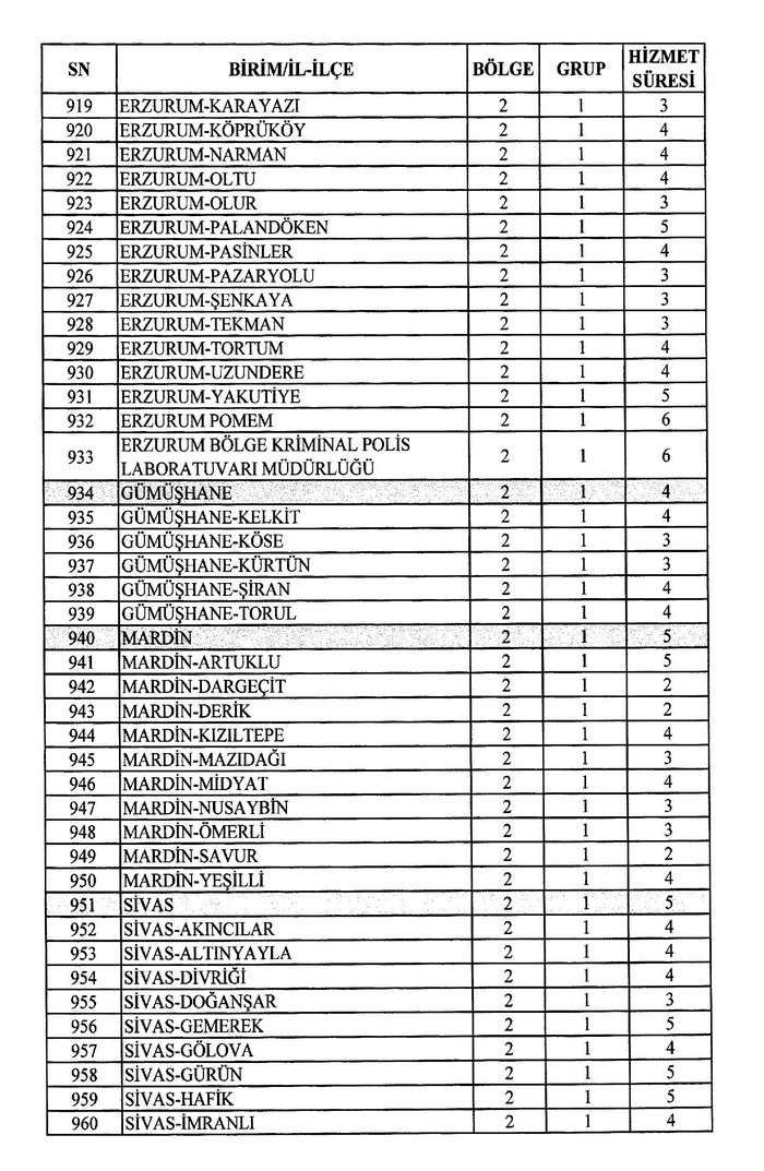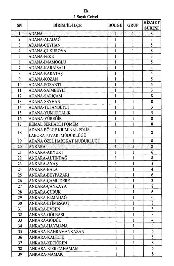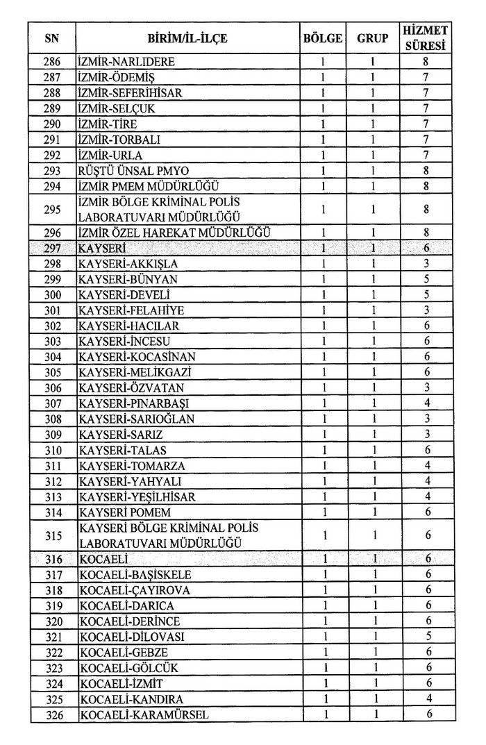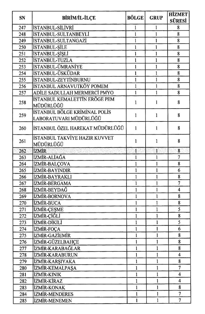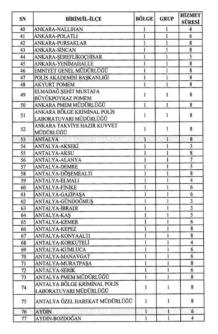Polislerin Merkez ve İlçeleri Görev Süreleri