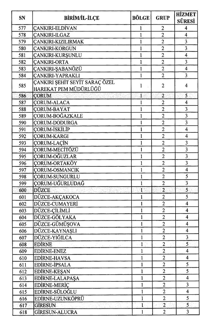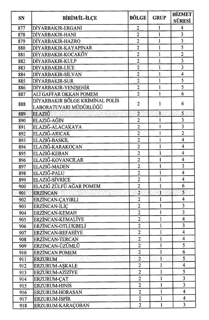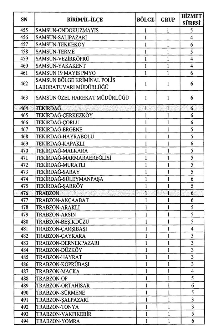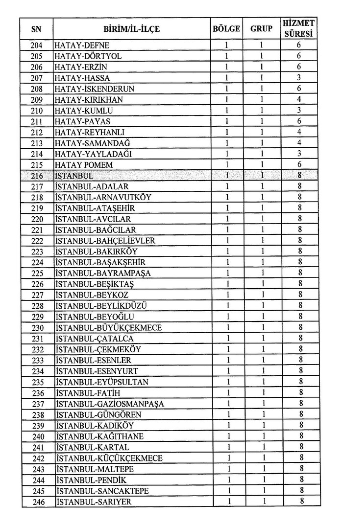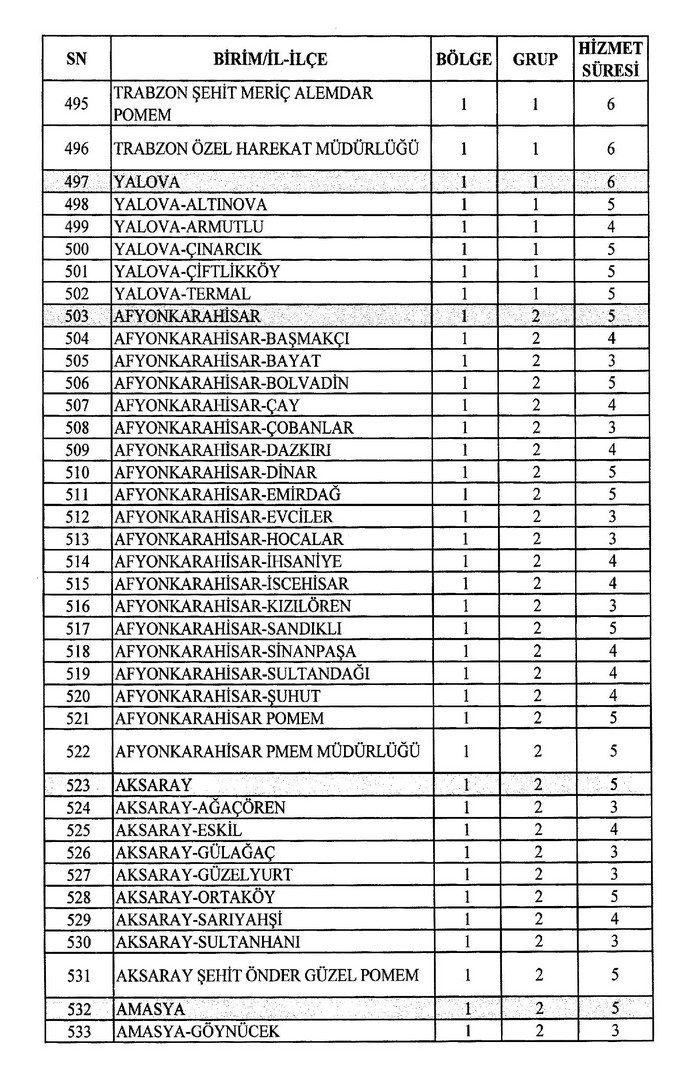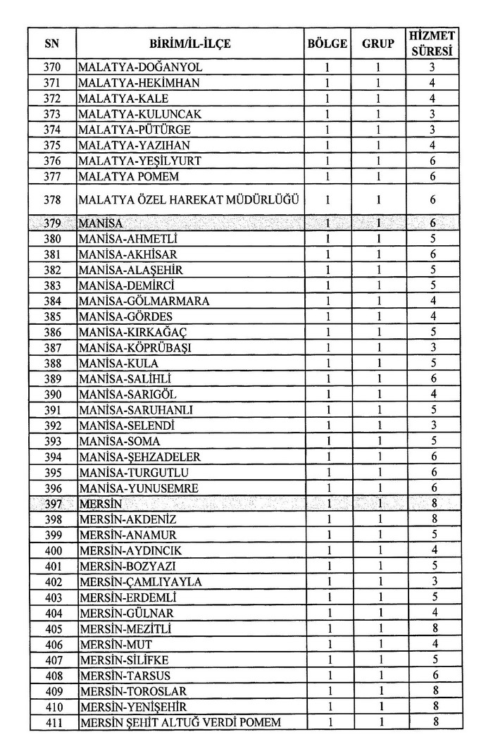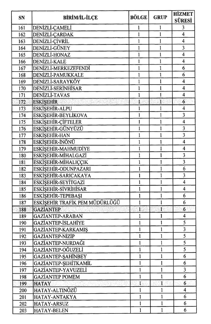 Polislerin Merkez ve İlçeleri Görev Süreleri