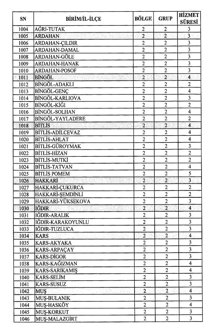 Doğu görevi tamamlandıktan sonra başka bir doğu iline atama isteyebilir. Kabul edilmesi halinde bu ilin hizmet süresi kadar kalacaktır.