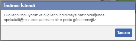 5- Son aşamada TAMAM diyoruz. Ve mail adresimize arşivin hazırlandığına dair uyarı gelmesini bekliyoruz.