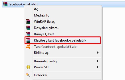 7- İnen bu klasörün üzerini sağ klikleyerek “Klasöre Çıkart” seçeneğini seçin.