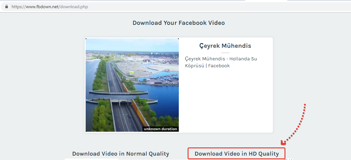 3- Kısa bir süre sonra aşağıdaki gibi gelen “Download Video in HD Quality” seçeneği seçelim.