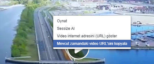 1- Videonun bulunduğu alana gidip videonun üzerine sağ klikleyin ve açılan pencerede “Mevcut zamandaki video URL’sini kopyala” diyelim.