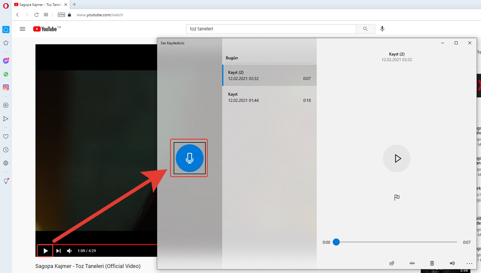 Şimdi internetten rastgele bir şarkı açıyoruz ve ses kaydetme uygulamasını başlatıyoruz. Böylece ses otomatik olarak kayıt edilmeye başlıyor. Ses kaydetme işlemini durdurmak için ses kaydetme uygulamasını durdurabilirsiniz.
