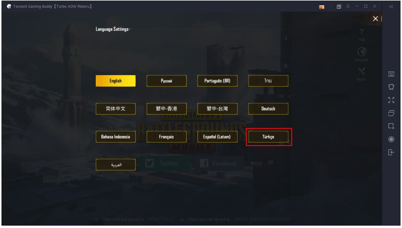 Ayrıca PUBG Mobile‘in arayüzünüde İngilizce’den Türkçe’ye çevirmek için aşağıdaki yolu izleyebilirsiniz.