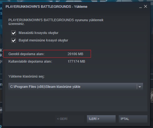 PUBG Oyunu 10.10.2018 tarihi itibariyle 19.1 GB‘lik bir alan kaplamaktadır. Yeni güncellemeler ve eklentilerle mevcut kapasite sürekli artacağını hatırlatalım. Oyun internet bağlantı hızınıza göre ortalama 2 saat içerisinde bilgisayarınıza inecektir. PUBG sistem gereksinimlerine baktığımızda depolama alanı olarak bizden 30GB’lık bir alan istiyor. Fakat bu oyunun 30 GB’lık bir yer kapladığı anlamına gelmiyor. Son güncelleme ile yaptığımız kontrollerde göre PUBG bilgisayarımızda 30 GB’dan daha az yer kaplamakta olduğunu görüyoruz.