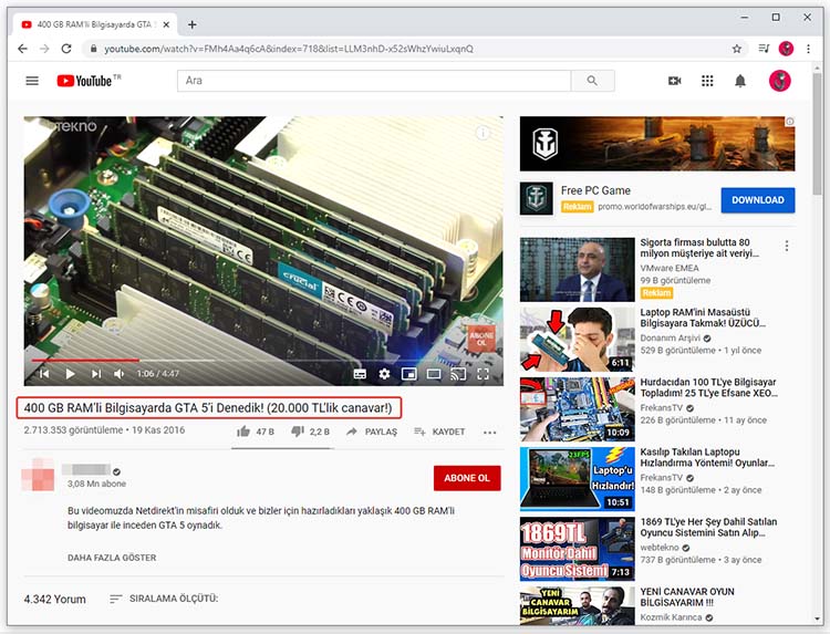 Bir anakartın destekleyeceği maksimum RAM miktarı önceden belirlenmiştir. Ayrıca ekran gördüğünüz üzere anakartım maksimum 32 GB’a kadar RAM desteklemektedir. Bunun üzerindeki kapasitede RAM takmam hiçbir şey ifade etmeyecektir. Ayrıca günümüzde bir kişisel bir bilgisayar için maksimum 16 GB RAM yeterlidir. Bu kapasite üzerindeki değerler tamamen israftır! Bilgisayar performansı için hiçbir şey ifade etmeyen değerdir! Bilgisayar ihtiyacı olan maksimum RAM seviyesi dışındaki RAM miktarı boşta bekler, yani kullanılmaz! Şu anda PUBG gibi en ağır oyunlar bile maksimum 16 GB kadar RAM istemektedir. Siz değil 32 GB, bilgisayarınızı 100 GB yapsanız bile bilgisayarınızın hızında en ufak bir değişiklik ifade etmeyecektir. Bu nedenle sağda solda benim 32 GB RAM’im var söylemlerine itibar etmemenizi tavsiye ediyorum. Bir bilgisayar tüm donanım birimleri ile bir bütündür ve performans gösterebileceği seviye sınırlıdır. Bu nedenle önümüzdeki 5 yıl içerisinde 8 GB veya maksimum 16 GB RAM bir kullanıcı için yeterli bir değerdir.