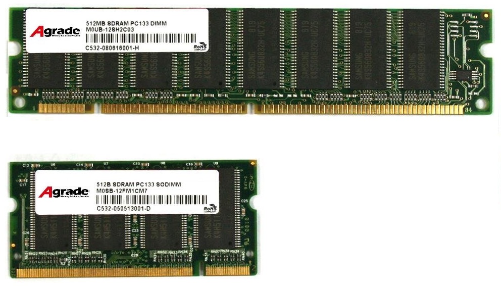Ayrıca masaüstü bilgisayarlarda kullanılan RAM’ler DIMM şeklinde isimlendirilirken laptoplarda kullanılan RAM’ler SODIMM şeklinde isimlendirilir. DIMM ve SODIMM birer modül yani DRAM paket tipidir.