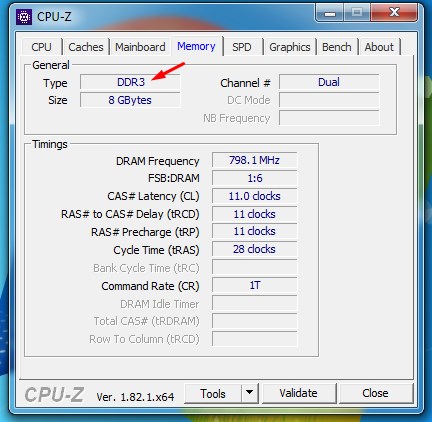 Örneğin CPU-Z ile baktığımda benim masaüstü bilgisayarımda DDR3 tipinde, 8 GB, Dual (Çift) RAM kullanılmaktadır. Bu şekilde bilgisayarınızın sahip olduğu RAM tipini ve miktarını öğrenebilirsiniz.