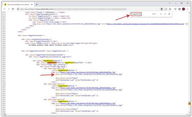Bunun için herhangi bir ilandayken fare sağ tık yapıyoruz. Gelen panelden “Sayfa Kaynağını Görüntüle” dediğimizde aşağıdaki gibi sayfa çıkacak karşımıza. Burada klavyeden CTRL tuşuna basılı tuttuktan sonra F tuşuna basıyoruz. Daha doğrusu CTRL ve F tuş kombinasyonu kullanıyoruz.