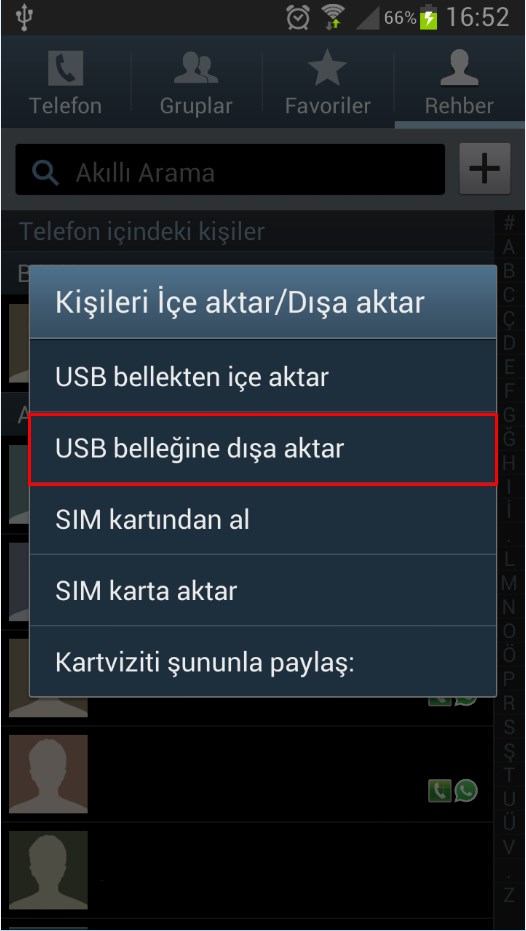 2- Açılan pencereden USB Belleğine dışa aktarı seçin.