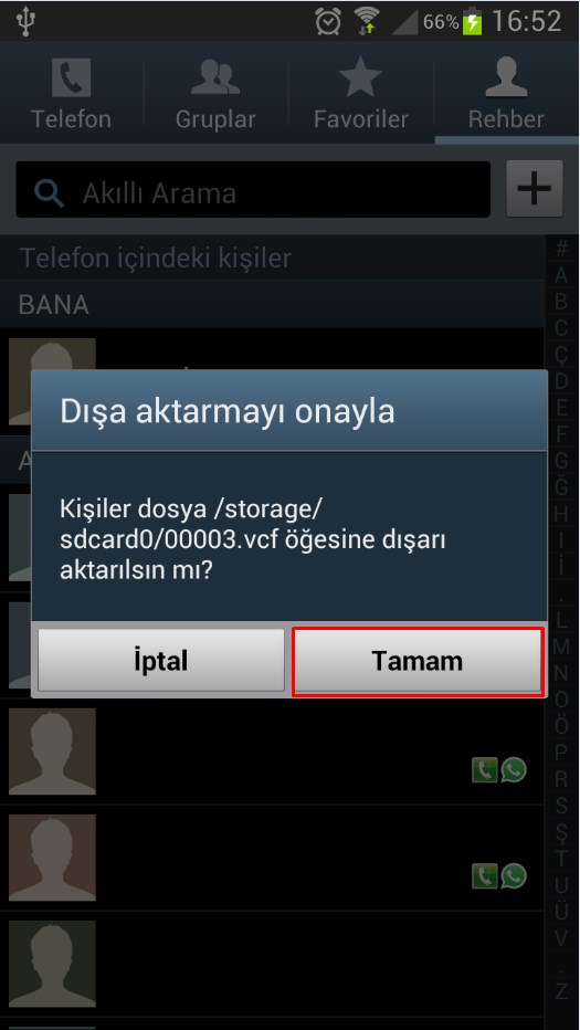 Bu yazımızda Samsung Galaxy Telefonlarda ( S3,S4,S6 v.s) “Telefon Rehberi Yedekleme” ile ilgili bilgi vermeye çalışacağız. Android telefonlarda rehberi yedekleme hemen hemen aynı yöntemle yapılıyor. Samsung Galaxy telefonlarda ise arayüzleri nerdeyse aynı olduğu için yöntemimizde aynı. Rehberi yedeklemek için öncelikle Menüden REHBER yazan yeri seçin.