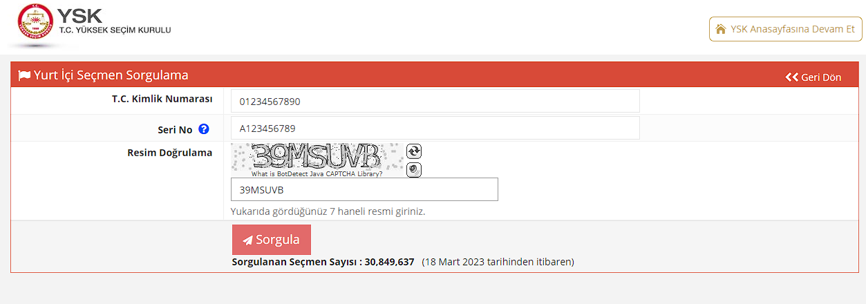 Yüksek Seçim Kurulu Üzerinden Seçmen Kağıdı Sorgulamak İçin: Tıkla