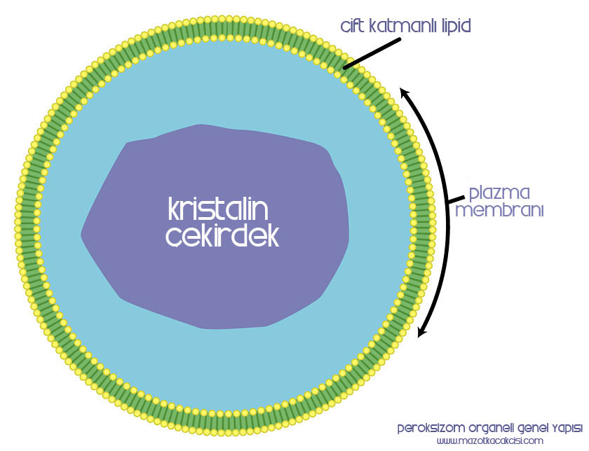 Hemen hemen tüm ökaryotik hücrelerde bulunan bir organeldir. Hücreye zarar verecek maddeler üretmeden organik bazı maddelerin oksidasyonunda görevlidir. Çok uzun zincirli veya dallı zincirli yağ asitlerinin, D amino asitlerinin, poliaminlerin katabolizmasında ve memelilerin beyin ve akciğerlerinin normal fonksiyonu için önem taşıyan bir eterfosfolipid olan plazmalojenlerin biyosentezi için gereklidir. Ayrıca enerji metabolizması için önemli olan pentoz fosfat yolundaki iki enzimin toplam aktivitesinin yaklaşık olarak %10’unu içerir.