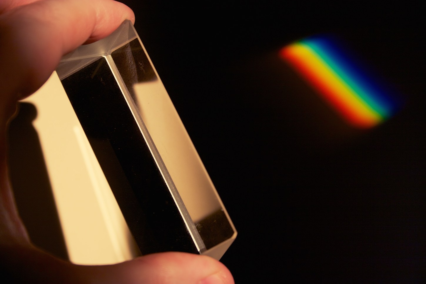 Üçgen prizmadan geçerek dağılan bir ışık demetini gösteren şekil.