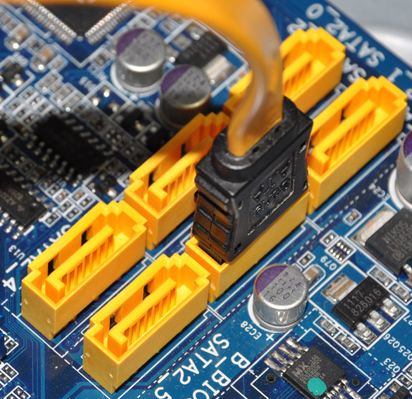 Masaüstü bilgisayarların anakartları üzerinde aşağıdaki gibi “SATA Portları” yer almaktadır. Bu portlara bildiğiniz üzere HDD-Harddisk dediğimiz Sabit Diskler takılmaktadır. Üstteki SATA SSD‘yi HDD ile aynı kabloyu kullanarak anakarta takıp kullanmak mümkündür.