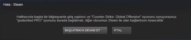 Steam üyesi iseniz birden fazla bilgisayardan giriş yaparak satın aldığınız veya ücretsiz olan oyunları indirip bilgisayarlara yükleyebilirsiniz. Bir çok kişinin merak ettiği soru ise iki veya daha fazla bilgisayardan giriş yapılıp yapılmadığıdır. Steam kullanıcı adı veya şifresine sahipseniz diğer bilgisayarlardan giriş yapabilirsiniz ancak sizin şifrenizle giriş yapmış diğer kullanıcılar eğer çevrimiçi bir oyun oynuyorsa ve siz çevrimiçi bir oyun (internet bağlantısı isteyen) bir oyun oynamak isterseniz diğer kullanıcının oyun bağlantısı kesileceğine dair aşağıdaki gibi bir uyarı çıkar. Giriş yapan kullanıcı devam et dediğinde çevrimiçi oyununa giriş yapar ancak diğer kullanıcı oynadığı oyundan düşer. Ancak karşıdaki kişi internet bağlantısı istemeyen bir oyun oynayacaksa interneti devre dışı bırakıp oyuna devam edebilir.