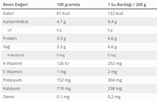 Süt Besin Değeri