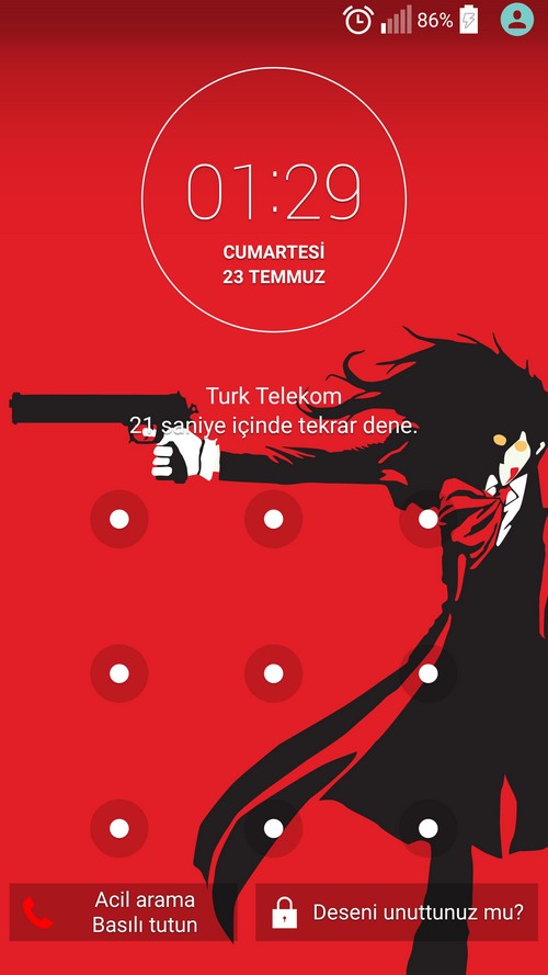 Hemen hemen bir çok android telefonda üst üste 5 kez kilit deseni yanlış girildikten sonra 30 saniyeliğine kilit deseni bloke oluyor bu kez tekrar size yeniden denemeniz için şans veriliyor.
