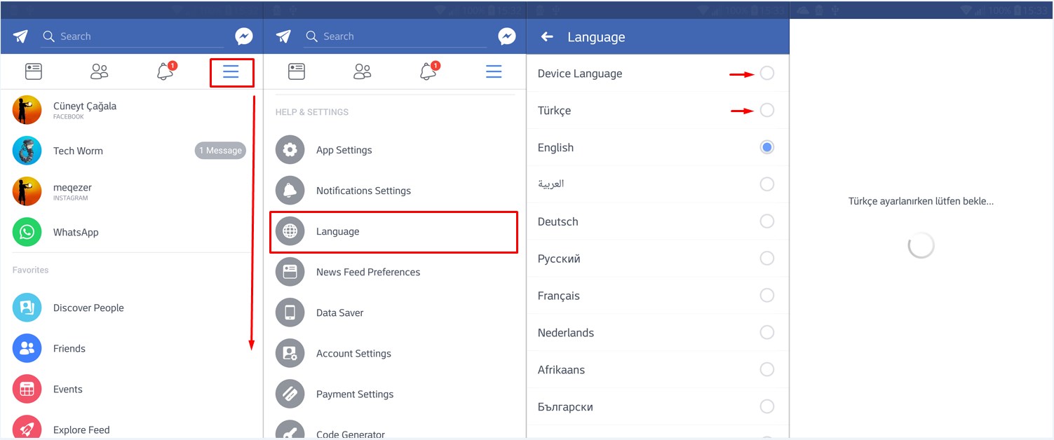 Benim telefonum Türkçe yazılı ancak Fesbuk sayfamda bulunan;beğen,yorum yap ve paylaş yazılıları ingilizce yazıyor bunu nasıl düzeltebilirim.
