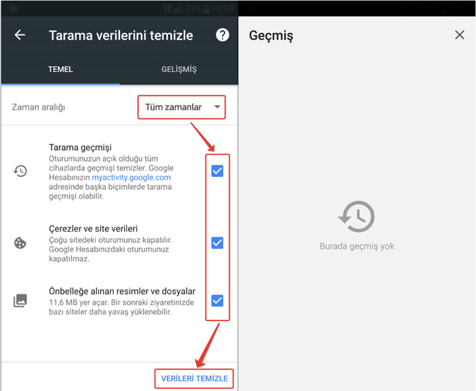 Telefondan Google Geçmişini Silme