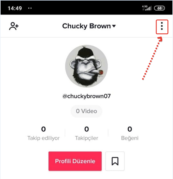 1.Adım: Uygulamanın alt tarafında profile tıklayın ve çıkan yerin üstünde üç nokta olacak ona tıklayın.