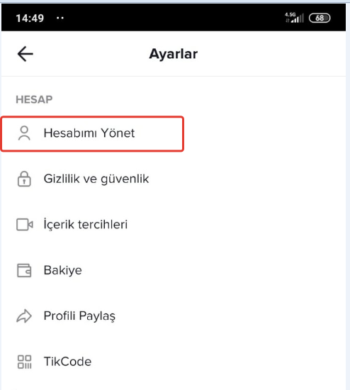 2.Adım: Hesabımı yönet kısmına tıklayın.