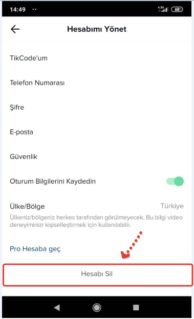 3.Adım: Açılan yerin alt kısmında yer alan ‘’Hesabı Sil’’ işlemini tıklayın.