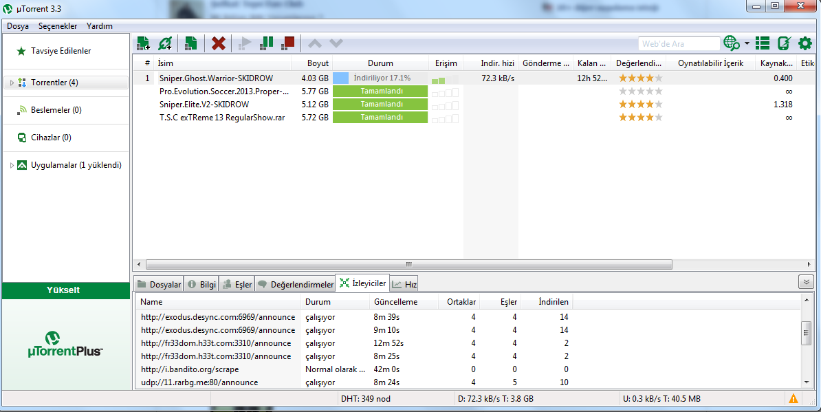 BitTorrent Uygulamasının Arayüzü: