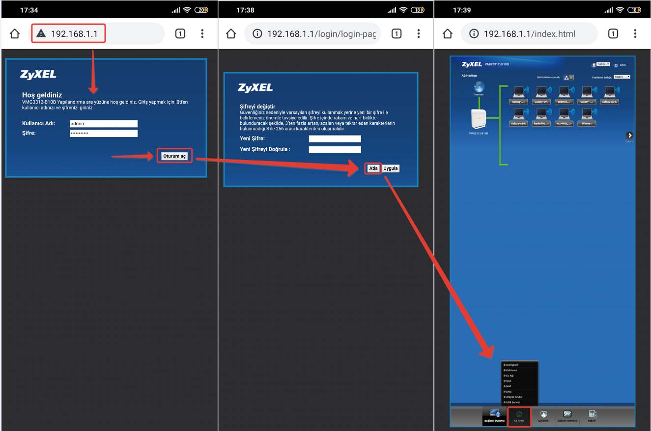 Herkese Merhaba. Bu yazımızda “Türk Telekom” kullanıcıların sahip olduğu “Zyxel” modemlerin “Wifi Adı ve Şifresini” basit bir şekilde nasıl değiştireceğinizi göstereceğim. İşlemlerimiz oldukça basit. Bunun için tarayıcımızı açıyoruz ve üstteki arama yani URL kısmına 192.168.1.1 yazıp enter/giriş yapıyoruz. Gelen kullanıcı adı ve şifre ekranında hepsi küçük harf olacak şekilde kullanıcı adı “admin” şifreye ise “turktelekom” yazıp “oturum aç” diyoruz. Ekrandaki gibi şifreyi değiştir ekranı gelirse “atla” diyoruz. Bu kısım normal modem arayüz şifresi olduğu için değiştirmemize gerek yok.
