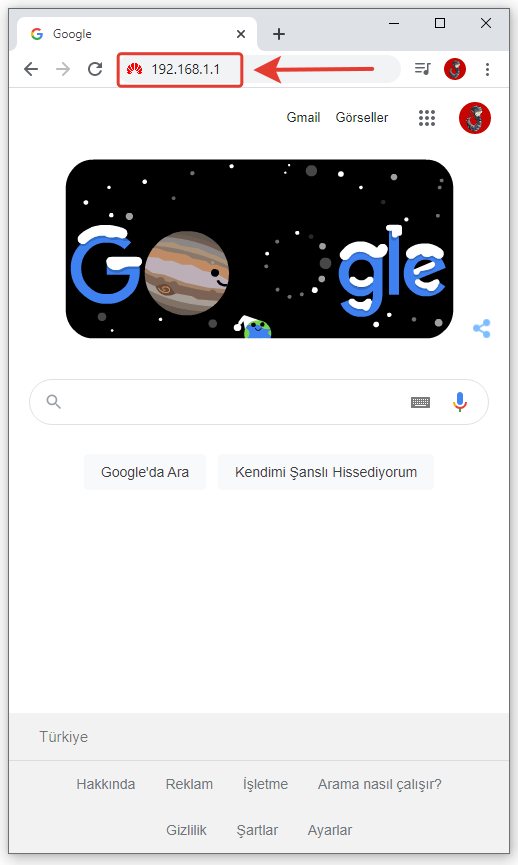 1- Telefon, tablet veya bilgisayarlarından bir tarayıcı (internet sayfası) açın ve buraya 192.168.1.1 yazıp enter/giriş yapın.