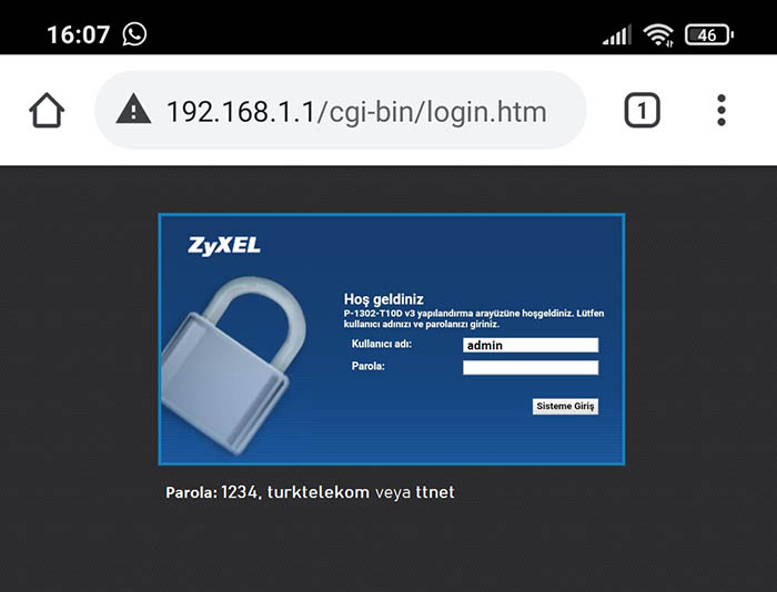 2- Gelen giriş ekranına kullanıcı adı olarak admin yazın, şifre/parola ise 1234, turktelekom veya ttnet yazıp giriş yapın.