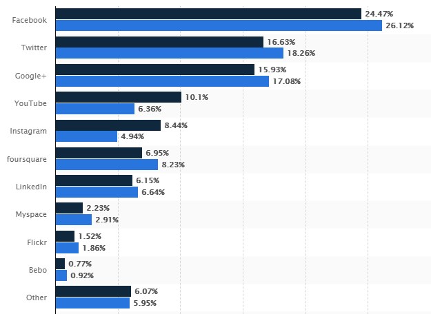 Türkiye’de kullanılan sosyal medya ağlarına baktığımızda hakimiyetin Facebook ve Twitter’da olduğunu görüyoruz. Çevrimiçi istatistik , pazar araştırması ve iş zekası portalı olan Statista’nın verilerine baktığımızda Türkiye’de 2017 yılı itibariyle –sosyal medya kullanıcılarının- %24.47’si Facebook, %16.63’ü Twitter kullanıcısı olduğunu görüyoruz.