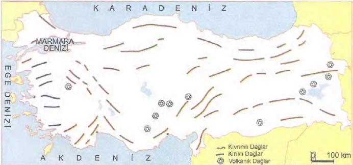 Kuzey Anadolu Dağları: Yıldız (Istranca) Dağları, Küre Dağları, Ilgaz Dağı, Köroğlu Dağları, Canik Dağları, Giresun Dağları, Kaçkar Dağı, Mescit Dağı, Yalnızçam Dağları, Kop Dağı, Ilgar Dağı