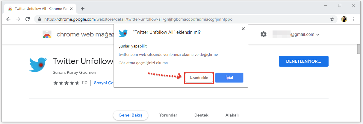 3- Chrome’a Ekle dedikten sonra karşımıza çıkan panelde Uzantı Ekle diyoruz.