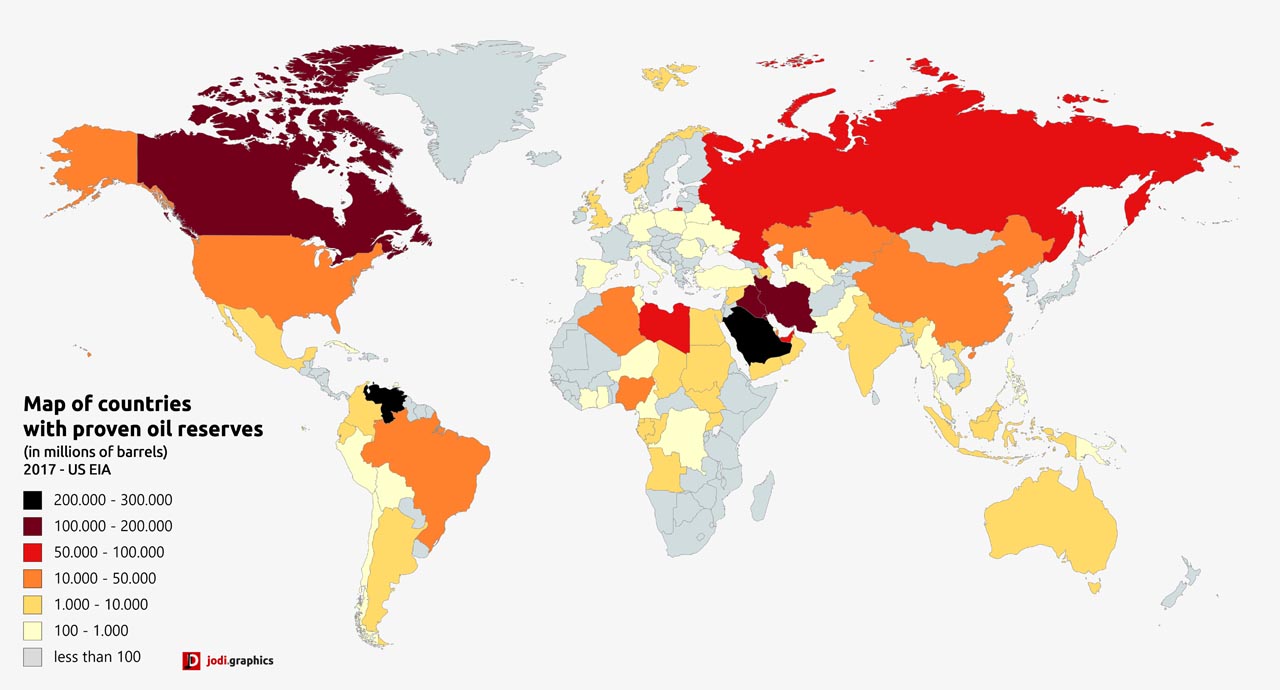 Kanıtlanmış Petrol Rezervleri, yeraltındaki petrol stoklarının tahmini değerini üretmek için jeolojik ve mühendislik süreçleriyle belirlenir. Kanıtlanmış Petrol Rezervleri, tanınan rezervuarlarına dayanarak belirli bir ülkenin ticari olarak mevcut (ve teorik olarak geri kazanılabilir) petrol rezervlerini sergilemektedir. Farklı kaynaklar (OPEC, CIA World Factbook, Petrol Şirketleri) farklı rakamlar vermektedir.