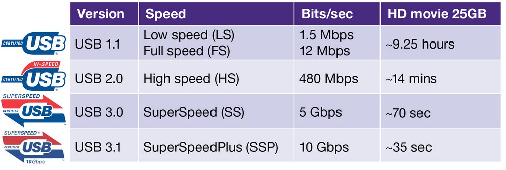 USB 1.0, USB 2.0, USB 3.0 ve USB 3.1 Hızları